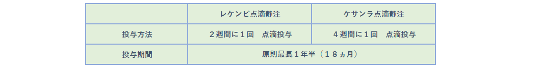 ・レケンビでは2週間毎、ケサンラでは4週間毎に投与を行っていきます。